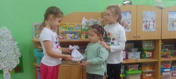 С любовью и нежностью старшие дошкольники волонтерского отряда «Делаем добро вместе» изготовили «вестников добра» – белоснежных ангелочков, которыми порадовали воспитанников младших групп.