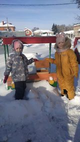 Перед прогулкой ребята насыпали в подготовленные емкости пшено, семечки, пшеницу и на территории детского сада разместили «Птичью столовую» для зимующих птиц. Прилетающие на участок снегири, свиристели, синицы, воробьи с удовольствием угощаются предложенным кормом.
