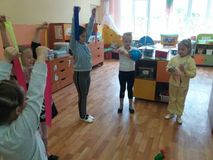 В старших группах ребята смотрели фильм"Секреты богатырского здоровья". Задорно прошли эстафеты с мячом, "Весёлые старты". Воспитанники многое узнали о своем организме, о «помощниках здоровья», оздоровительных мероприятиях, о взаимосвязи здоровья и питания. Дошкольники выполняли дыхательную гимнастику, гимнастику для глаз, проводились закаливающие процедуры, на прогулках проводились спортивные игры.