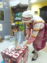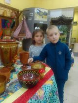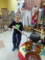 У малышей группы №24 «Незабудка» стало доброй традицией изучение истории родного края. В рамках проекта «Русская старина» дошколята посетили краеведческий музей нашего города. Экскурсовод Кальдяева Светлана Сергеевна радушно встретила ребят в русском национальном костюме и повела в зал, где собраны экспонаты, дающие представление о быте наших предков. Ребята не только познакомились с предметами, ушедшими из нашего обихода, смогли их потрогать, но и попробовали их в деле: прошлись с коромыслом, спряли нить из овечьей шерсти, гладили полотенце рубелью. Порадовала детвору и народная игра в «Платок». Время, пронизанное духом старины пролетело незаметно. Народная мудрость гласит: «Не забывайте старь – она новизну держит». Осознавая это, педагоги и родители неустанно приобщают детей к истокам народной культуры, развивая тем самым личность ребенка.