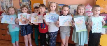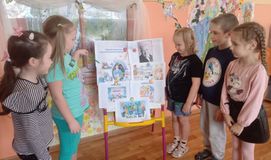 Из детских рисунков по сказам была оформлена выставка «В гостях у сказки дедушки Корнея».