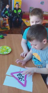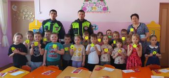 В очередной раз, старшие воспитанники МБДОУ ДС №19 г. Кузнецка постигали тонкости дорожной науки с лейтенантом полиции, инспектором ДПС Кагарёвым Русланом Рашидовичем. Воспитанники состязались в отгадывании загадок, чтении стихов, отвечали на запутанные и сложные вопросы, раскрашивали сюжетные картинки и составляли по ним короткие рассказы. Путешествовали по мини-остановкам, объясняя названия и смысл фраз «Пристегни ребёнка», «Пропусти пешехода», «Не пей, за рулём», «Засветись на дороге». Интересно и содержательно беседовали с представителями закона, пополняя и расширяя свои знания по правилам дорожного движения. В заключение мероприятия все дети от гостей получили забавные фликеры-смайлики, а совместное фото сделало нашу встречу запоминающей и познавательной.