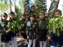 Всё дальше и дальше уходят от нас страшные годы Великой Отечественной войны, годы страданий, мучений, слёз и разлуки. Как рассказать детям о героическом прошлом страны, как пробудить в них гордость и желание быть достойными той Победы? На помощь пришли рассказы, стихи, картины, фотографии прошлых лет. Военные песни заставили малышей расправить плечи, а рассказы о прадедушках и прабабушках из уст родителей помогли осознать причастность их семей к этой великой дате. В преддверии праздника в рамках реализации проекта «День Победы – главный праздник страны» воспитанники МБДОУ ДС №19 познакомились с военными наградами и профессиями, техникой и предметами быта. В ходе тематических бесед «Дети – герои ВОВ», «Горит в землянке огонёк» дошколята прониклись чувством благодарности к людям, ковавшим Победу, любви и гордости за свою Родину. На выставке посвященной Дню Победы появились первые рисунки о войне. Дети рисуют то, что их волнует, что для них значимо и понятно. По аллее детского сада прошёл маленький Бессмертный полк, белые голуби Мира украшают окна Победы, а это значит, что детские души тронули события тех далёких лет, пробудили интерес к истории страны, героям, добывшим Победу. Малыши поняли стремление Советского народа не дать в обиду Родину, свои семьи, сёла и города. Дошколята малы, но они знают, что добро побеждает зло, отвага и милосердие побеждают страх, и торжествует Победа!