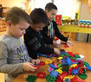 Воспитанникам старшего возраста была показана призентация : « Почему люди становятся изобретателями»-о том, как важна профессия архитектора, конструктора, строителя.Ребята с огромным удовольствием конструируировали из металлического конструктора- «Строим мосты» ,«Мультяшные герои», деревянного – «Лесенка для матрешки», «Маленькие и большие дома», «Лего», геометрических фигур, счетных палочек. Кто - то строил дом, кто-то целый город сконструировал! У кого- то получился гараж, у кого- то целая заправочная станция! Дети даже организовали мини-выставку поделок из мелкого конструктора LEGO! Весело прошли соревнования – «Построим цирк». Воспитанники пользовались как готовыми схемами, так и придумывали свои.