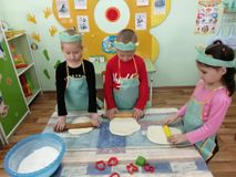 Воспитатель Шаронина Марина Михайловна, утром пришла в группу не с пустыми руками, она угостила любимых дошколятам ароматным печеньем. Оно настолько понравилось детям, что они решили попробовать сделать такое же сами. Под руководством воспитателя малыши надели фартуки, колпачки и превратились в настоящих поваров-кондитеров. Марина Михайловна рассказала и показала как готовиться тесто для печенья, как его нужно раскатывать, как правильно вырезывать формочками, затем раздала каждому по кусочку теста и ребята принялись за дело. Они увлеченно раскатывали тесто, вырезали из него домики, елочки, сердечки, грибочки, звездочки. Работа закипела.
