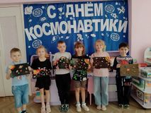 Сегодня, во времена космических ракет, спутников и луноходов, нам есть, что рассказать своим детям. В преддверии Дня Космонавтики в МБДОУ ДС №19 г. Кузнецка прошла тематическая неделя, посвящённая космосу, которая оказалась насыщенной и плодотворной. Педагоги средних, старших и подготовительных групп запланировали и провели различные мероприятия.Так воспитанники подготовительной к школе группы отправились «покорять космическое пространство». Они слушали рассказы о знаменитых собаках Белке и Стрелке, которым удалось раньше человека побывать в космосе, узнали много интересного об учёных, стоявших у истоков развития космонавтики, познакомились с историей возникновения праздника, о планетах Солнечной системы, о космических полётах. С большим интересом и удовольствием изготовили ракету из бумаги в технике оригами, разгадывали загадки о космических объектах, организовали строительную игру «Космодром». В группе оформили тематическую выставку космических рисунков. Чего среди них только нет: и ракеты, и планеты Солнечной системы. Работы получились яркие, оригинальные и красочные. Итоговым и запоминающимся мероприятием к празднованию Дня Космонавтики стала викторина «Путешествие в космос», которое совместно совершили воспитанники старших и подготовительных групп нашего детского сада. Дети получили много знаний и положительных эмоций, появилось желание быть похожими на сильных духом и мужественных космонавтов.
