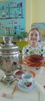 А вечером детвору ждал настоящий сладкий пирог, да чаепитие у самовара, во время которого каждому захотелось поделиться своими семейными традициями домашнего чаепития. Тёплый чай, тихий неторопливый разговор да вкусный пирог – что ещё нужно для завершения хорошего дня?