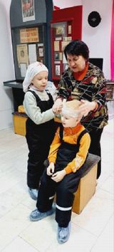 Экскурсовод – Салиева Алла Ивановна доступно рассказала дошкольникам интересные истории времен Великой Отечественной войны, о героях города Кузнецка, проникновенно донесла тот ужас военного времени и нависшую угрозу фашизма над нашей страной. С состраданием и особым любопытством они всматривались в личные вещи солдат – наших земляков, с осторожностью примеряли каски, бережно брали в руки автомат, пробовали наматывать портянки, бинтовать раненых, учились быть разведчиками.