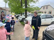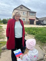 Во время прогулки по улицам нашего города дети раздавали встречным прохожим праздничные флажки с добрыми пожеланиями мира, добра и счастья.