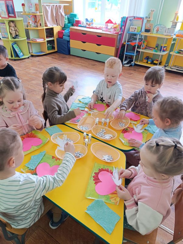 19 сентября в МБДОУ ДС №19 г. Кузнецка прошла акция, посвященная Всемирному дню мира. Дошкольники узнали историю праздника, усвоили, как много бед несут людям войны, и что борьба за мир является делом каждого жителя планеты Земля. Во время беседы мальчишки и девчонки искренне обсуждали, что значит быть дружными, почему важно уважать друг друга, и какими маленькими, самыми простыми поступками они могут делать мир лучше и добрее. На занятии ребята увлеченно слушали рассказы о взаимовыручке и помощи, читали стихи про мирное небо и любовь к Родине. Особое впечатление произвели на ребят звуки колокола мира. Они заворожили и покорили детские сердца. Затем дошкольники приняли активное участие в творческой мастерской, воплотив свои фантазии и мысли в деле, создали сердечки с голубями – символами мира, такая коллективная работа помогла каждому ребенку ощутить важность патриотизма, единства и дружбы.