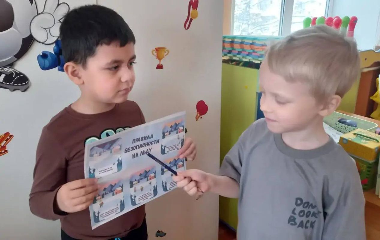 С дошколятами организовали цикл тематических бесед: «Берегитесь, крохи – на льду шутки плохи!», «Тонкий лёд на водоёмах». В ходе презентации «Почему лёд бывает опасным?» дети узнали, что даже крепкий и прозрачный лёд может быть коварным. Ребята разбирали и обыгрывали потенциально опасные ситуации по принципу «Кто поступает неправильно?» и «Как избежать неприятностей?», повторили основные правила поведения на водоемах зимой.